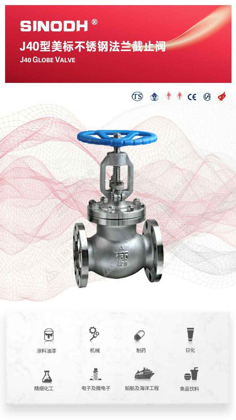J40型美标不锈钢截止阀,为半岛.体育-半岛online(中国)自主研发生产。本产品的设计制造符合美国国家标准ANSIB16.34,美国石油学会标准AP1 6D和AP I 600要求,产品结构紧凑密、刚性好、封性性能优秀是一种最常见的启闭阀,利用闸板的上下工作来接通(全开)和截断(全关)管道中的流体介质。